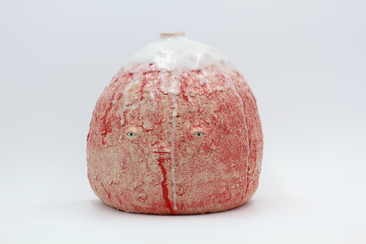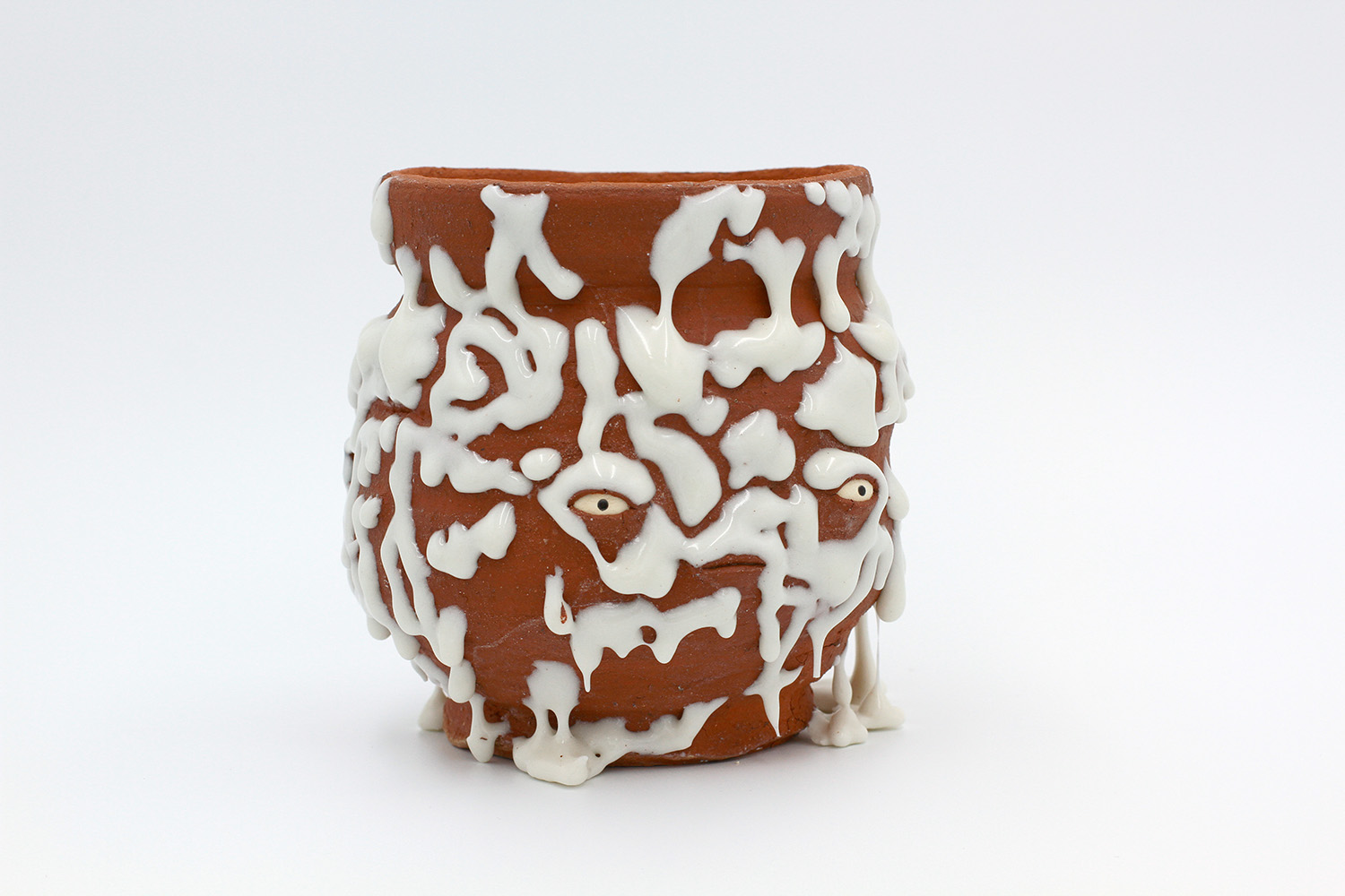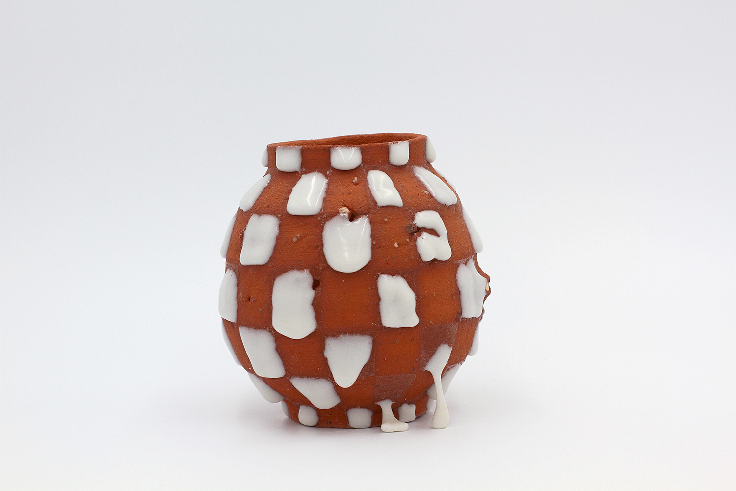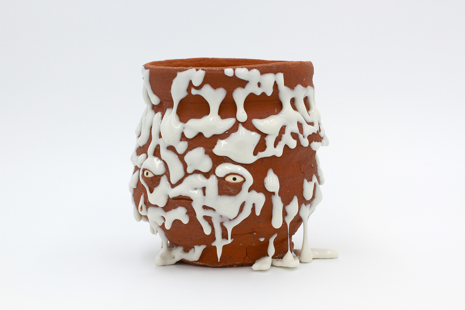 i am an ornamental vessel made from terracotta clay sourced from a building site in brunswick. my red gloopy glaze fell off in drips during firing. |