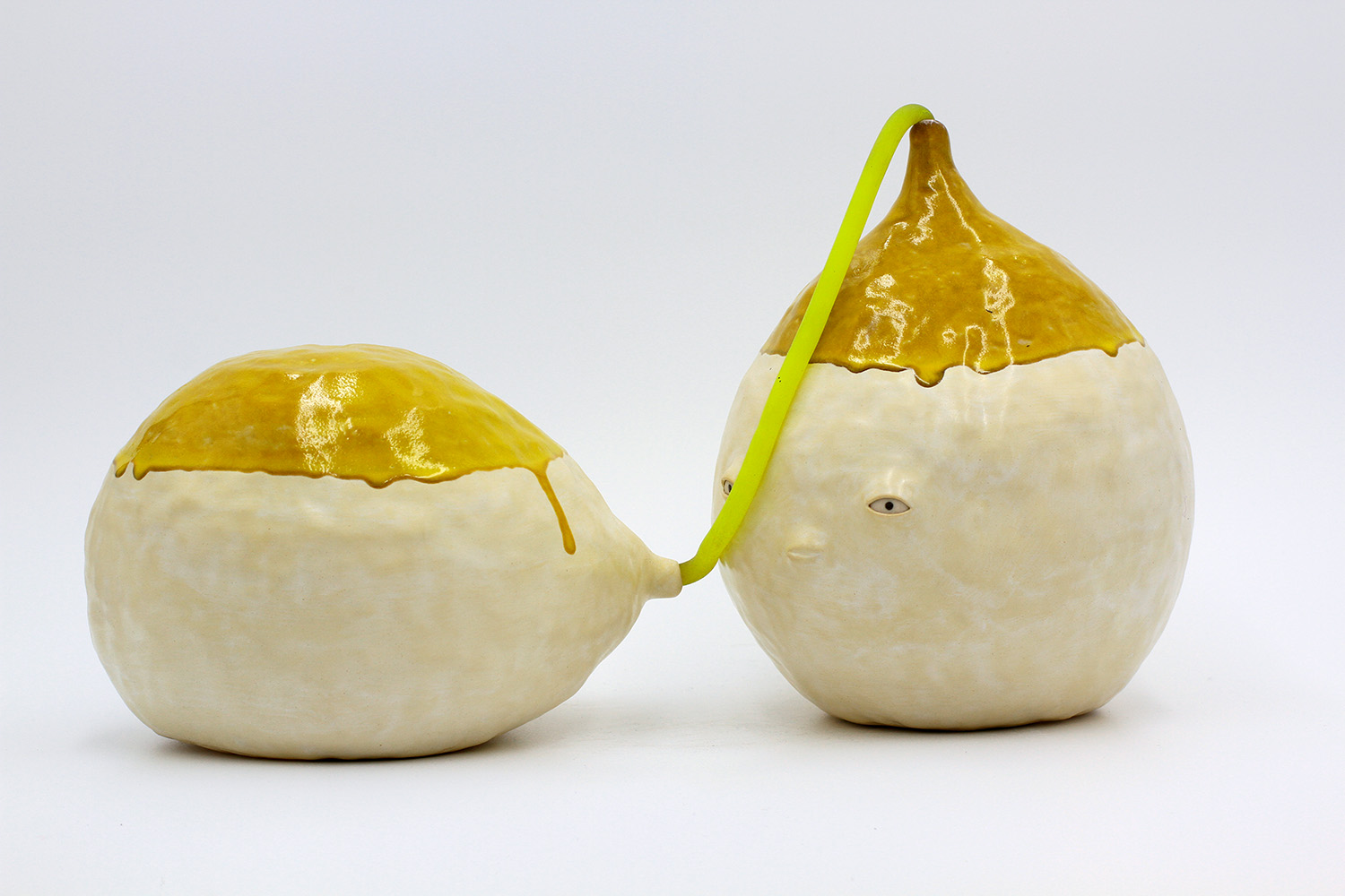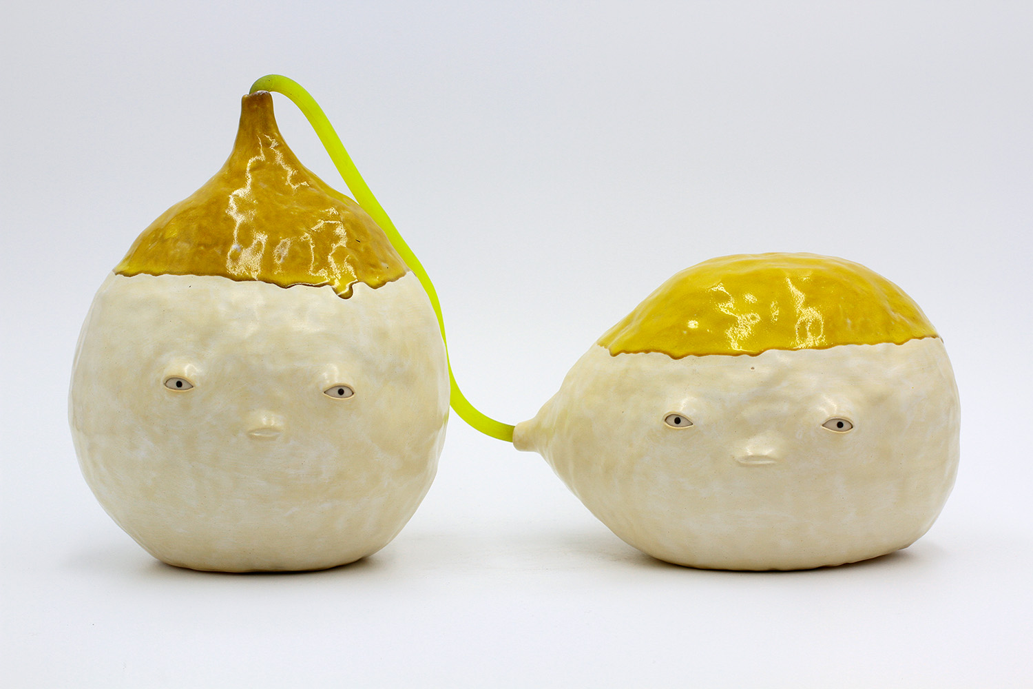 we are a pair of sculptures - just for good looks. we are connected by our yellow stretchy thing. |