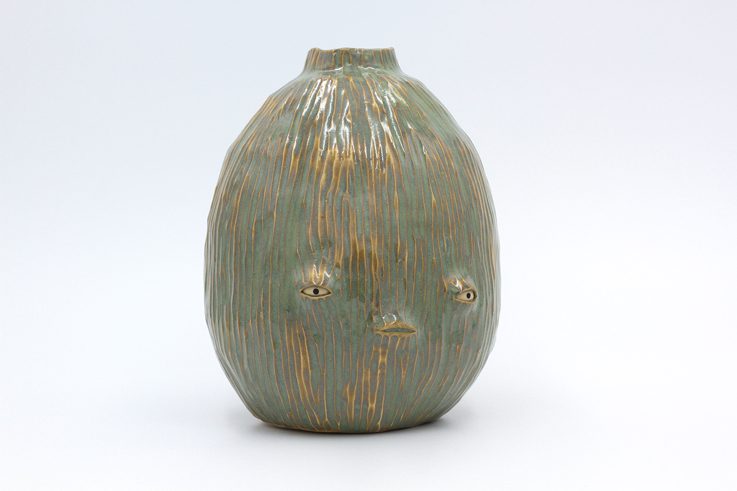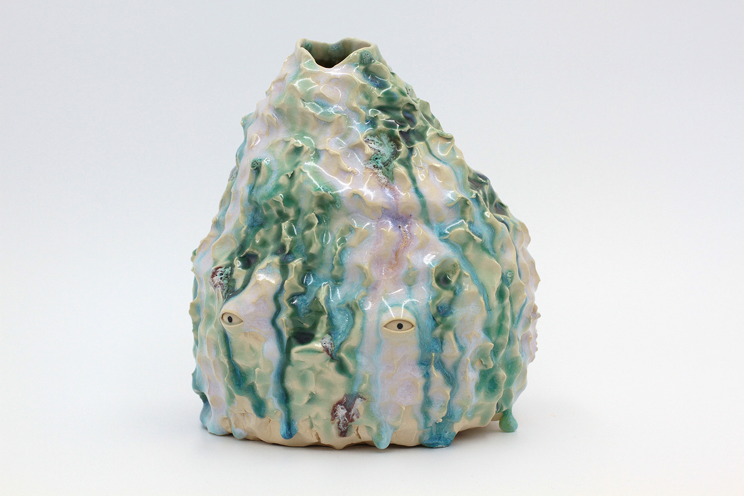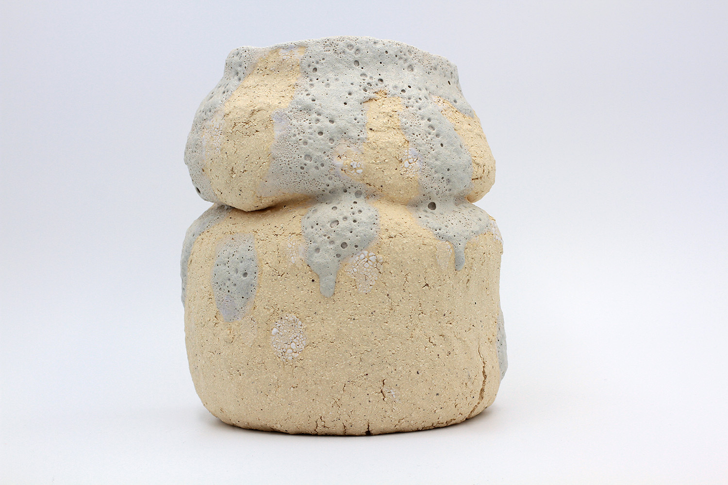 i am a sculptural jar with lots of texture from my grogged body and gloop glaze. |