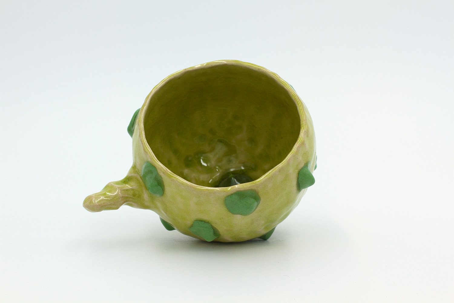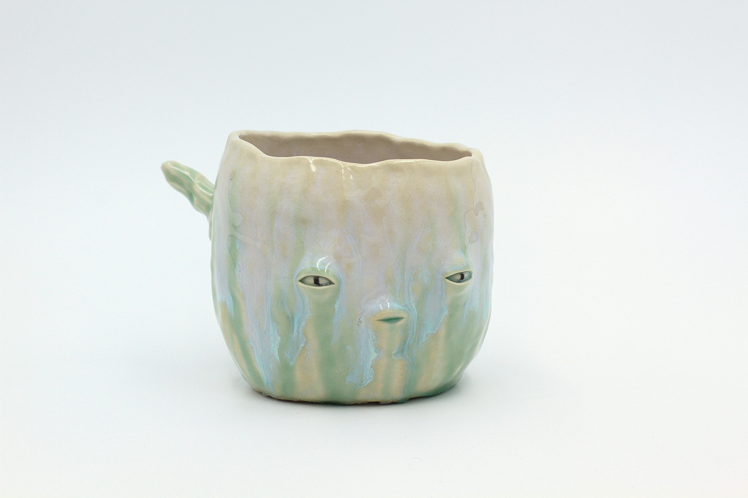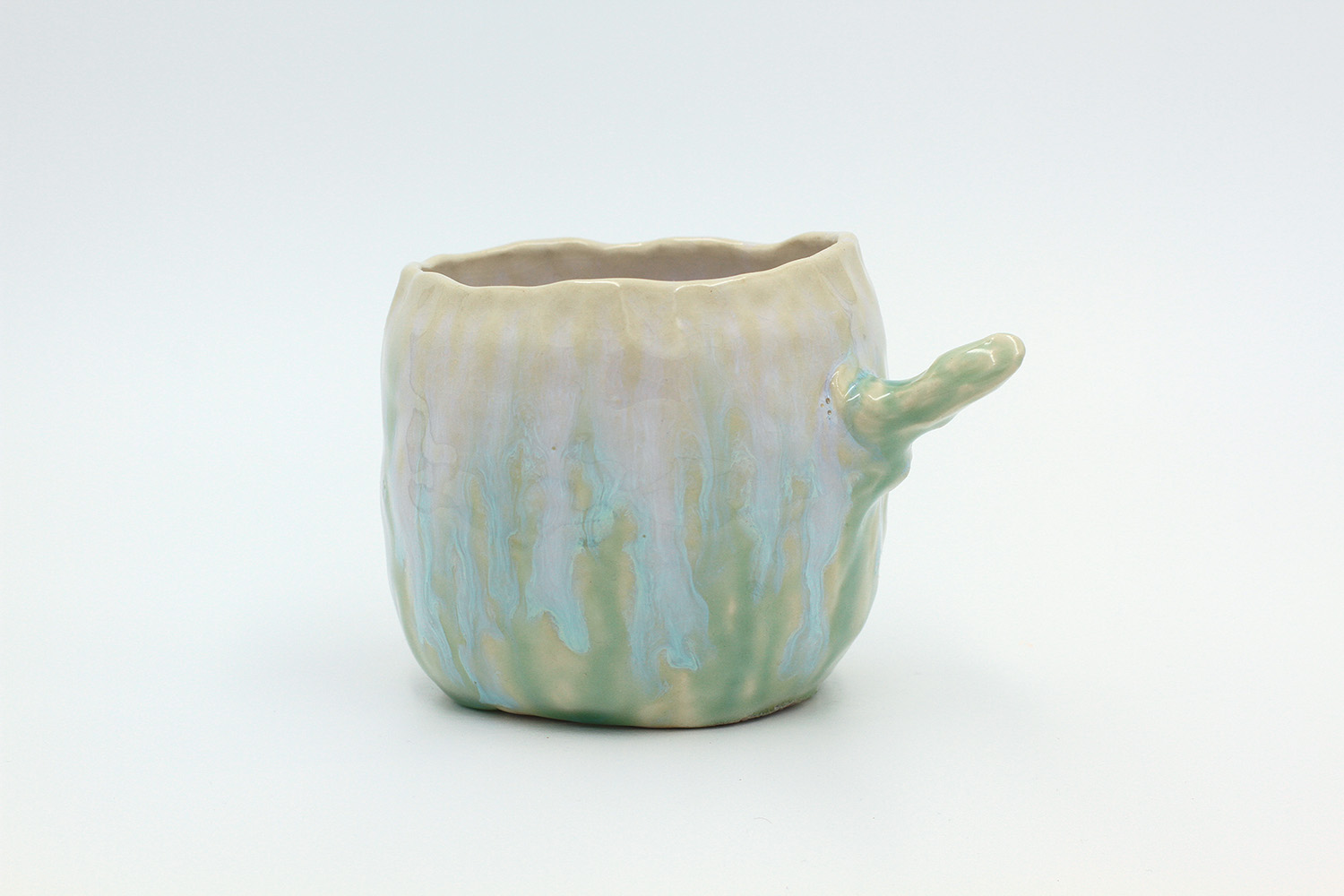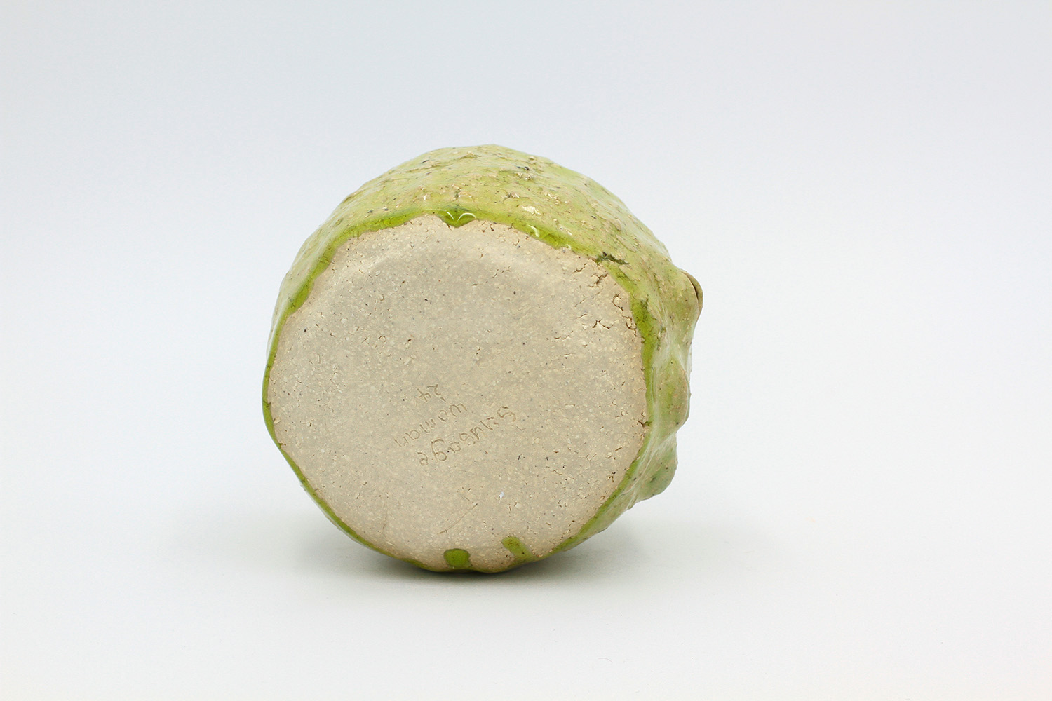 i am a cup that got a little bit over cooked in the kiln so the glaze stuck to the bottom of the kiln (pictured). no microwaves/dishwashers please. |