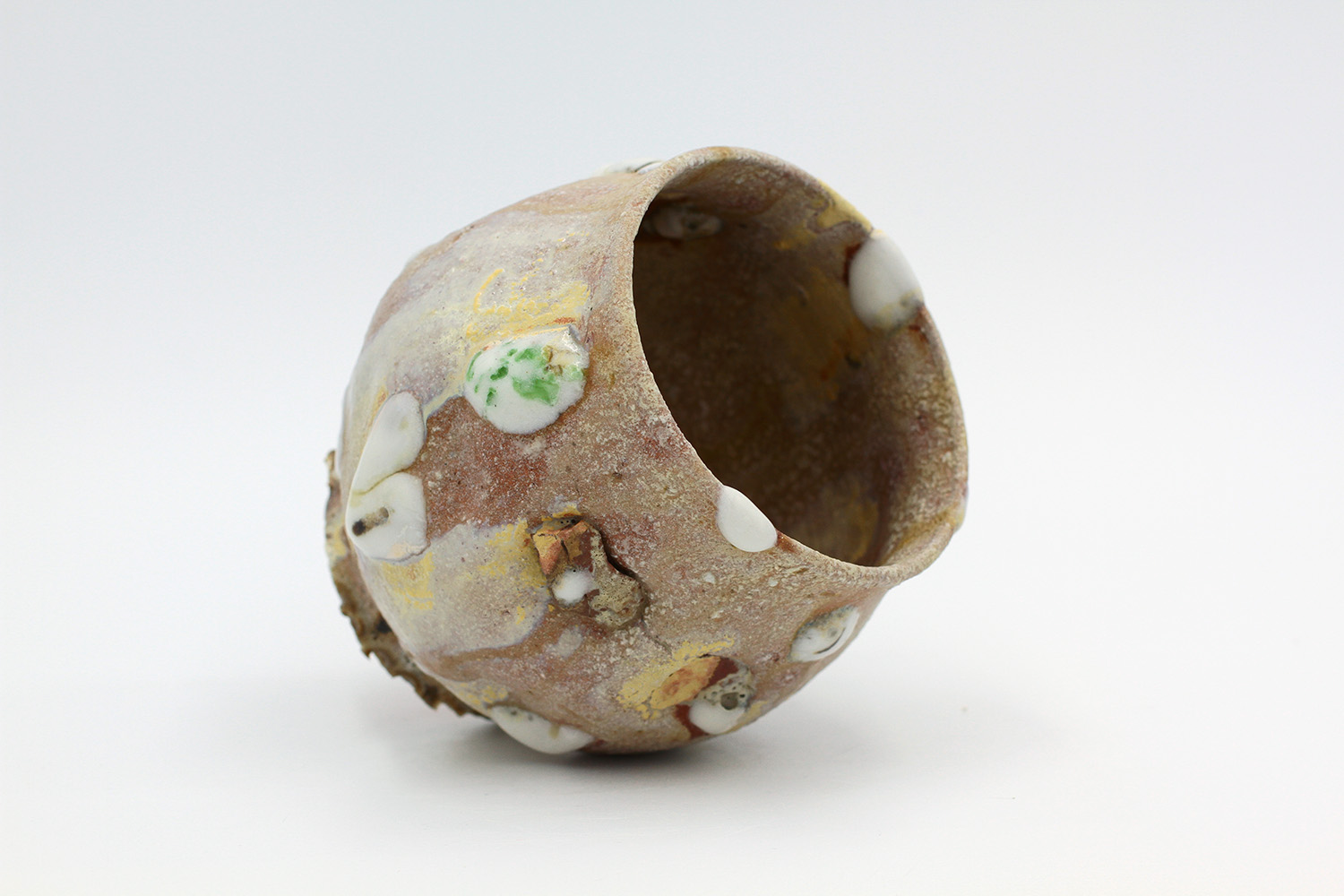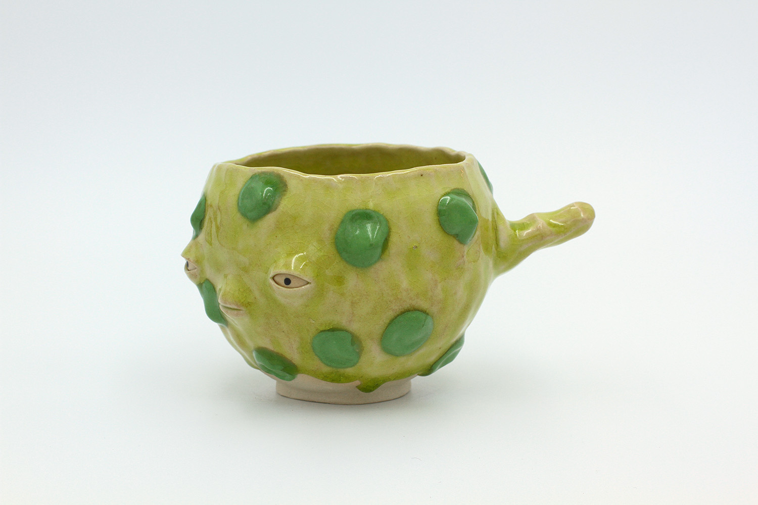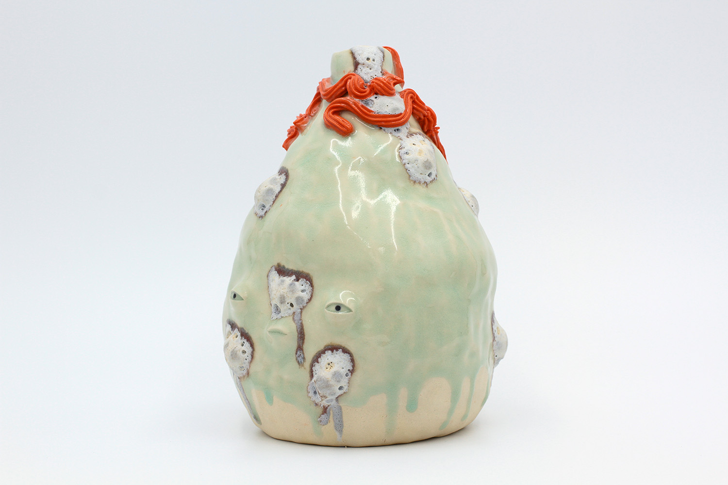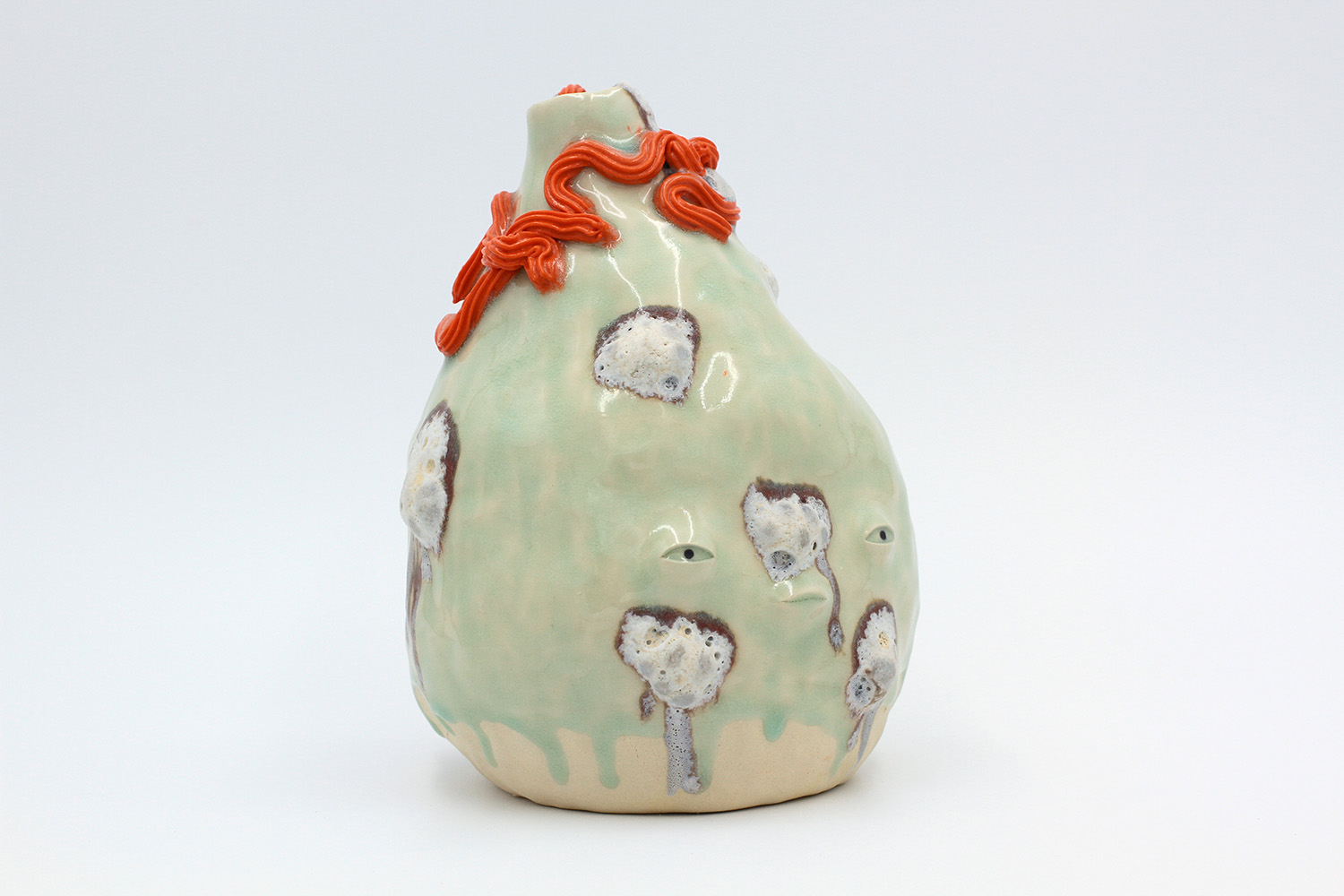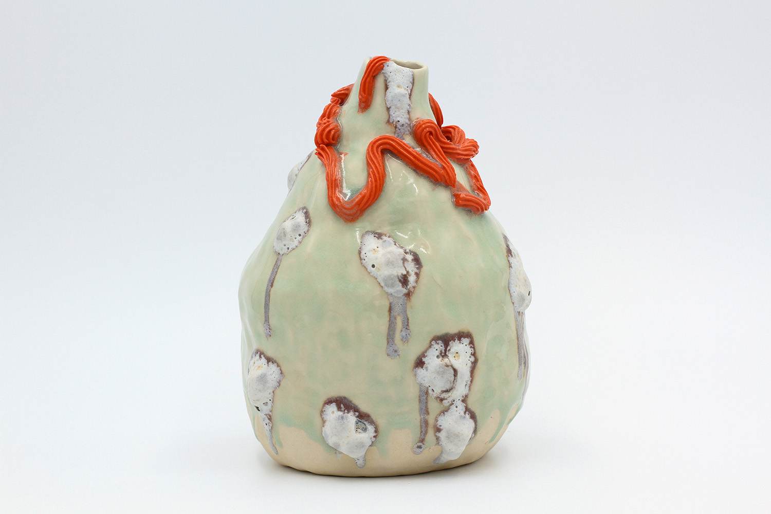 a vase with hard glaze blobs all over me - they're a little bit delicate. |