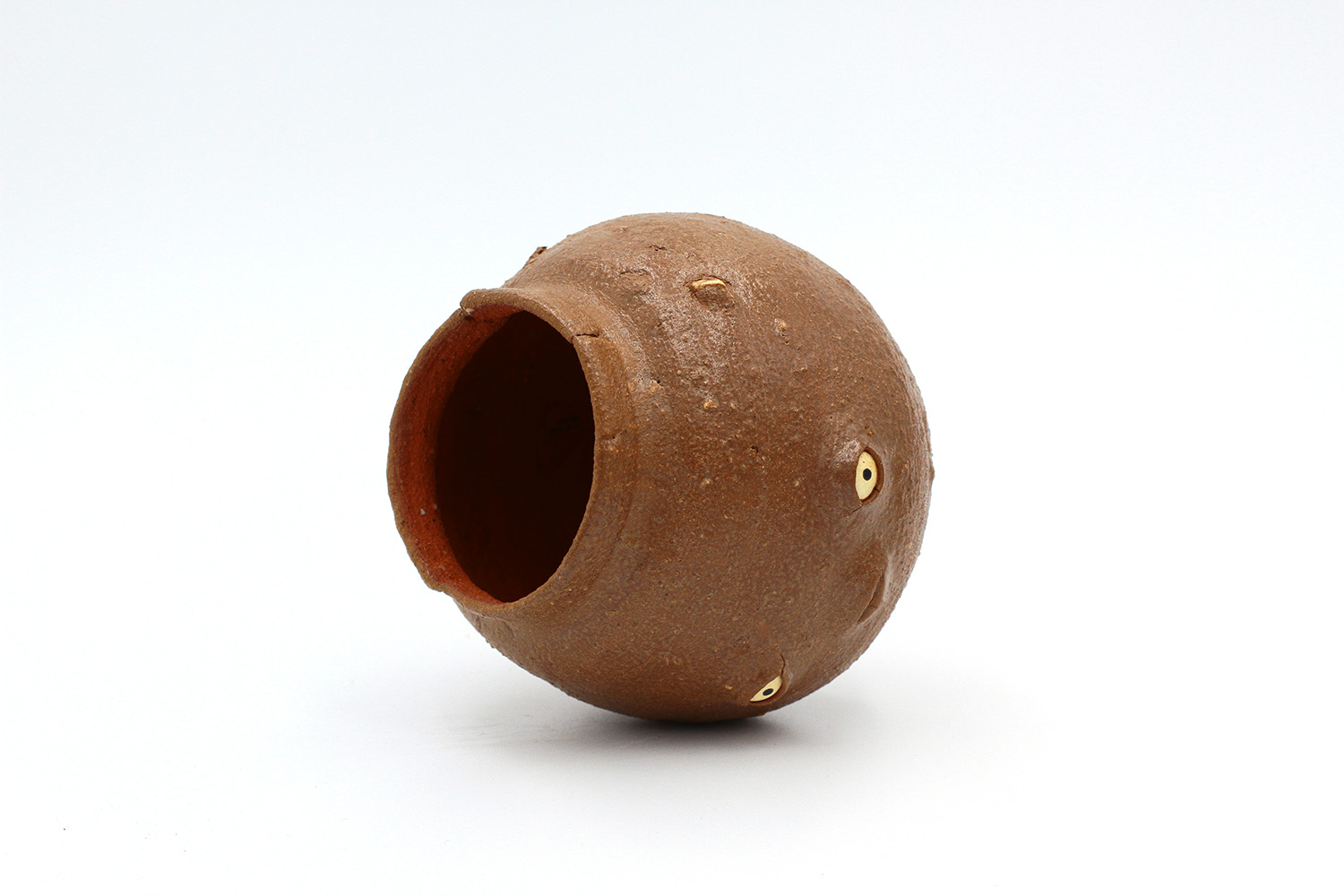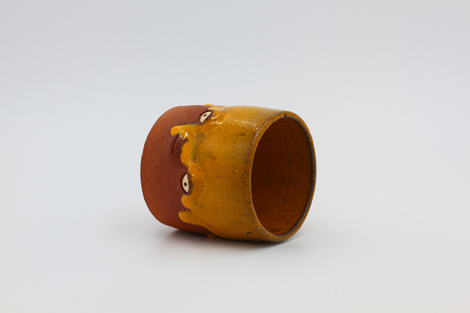 i am an ornamental cup made from terracotta clay sourced from a building site in brunswick. my orange glaze contains cadmium so i'm not best for drinking. |