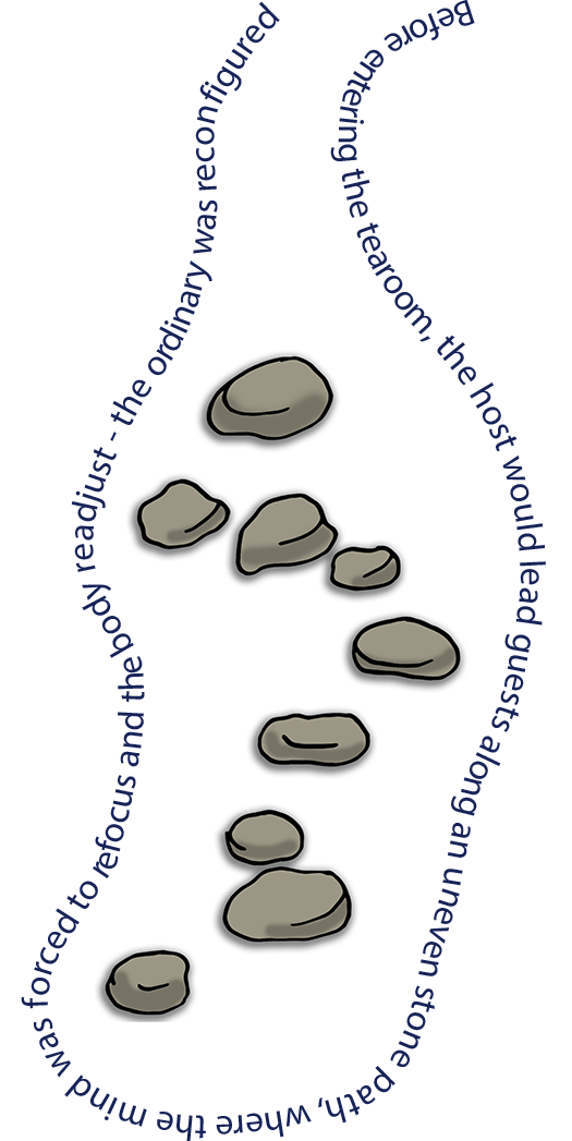 To enter the hut, the party crawled through a square hole called a nijiriguchi. This too was a play on optics, like Hideyoshi's Golden Tea Room, yet the effect was reversed, in that you made your way from light to dark. By contorting the body through a small threshold, the room would appear to be larger, and the bodies equalised as hierarchical arrangements were reduced (13).