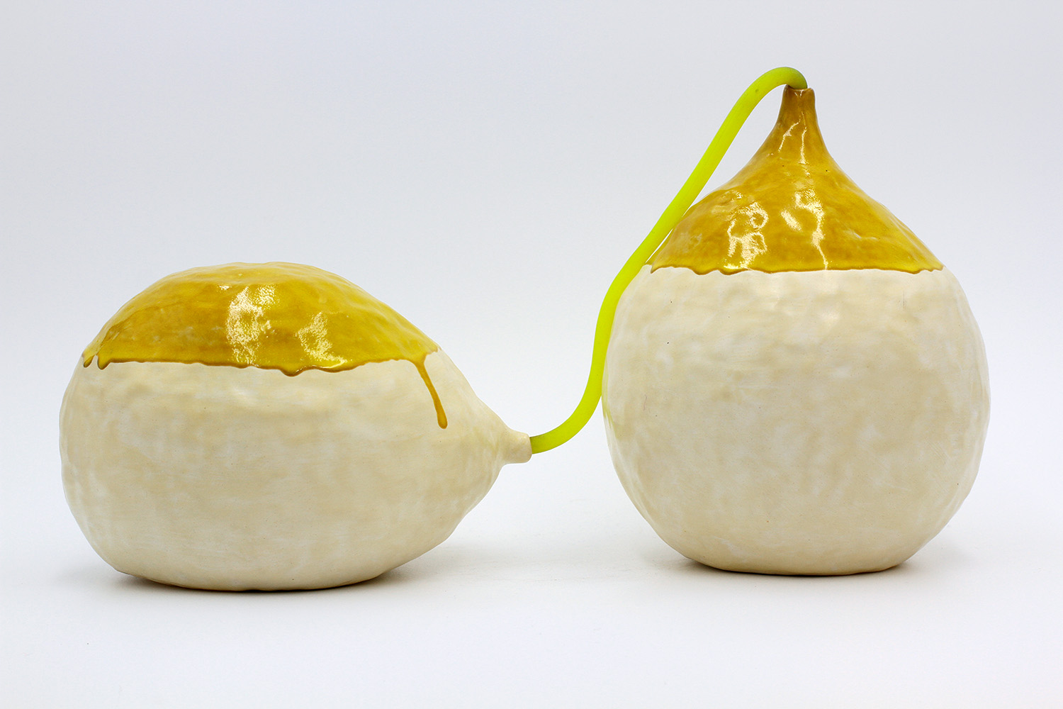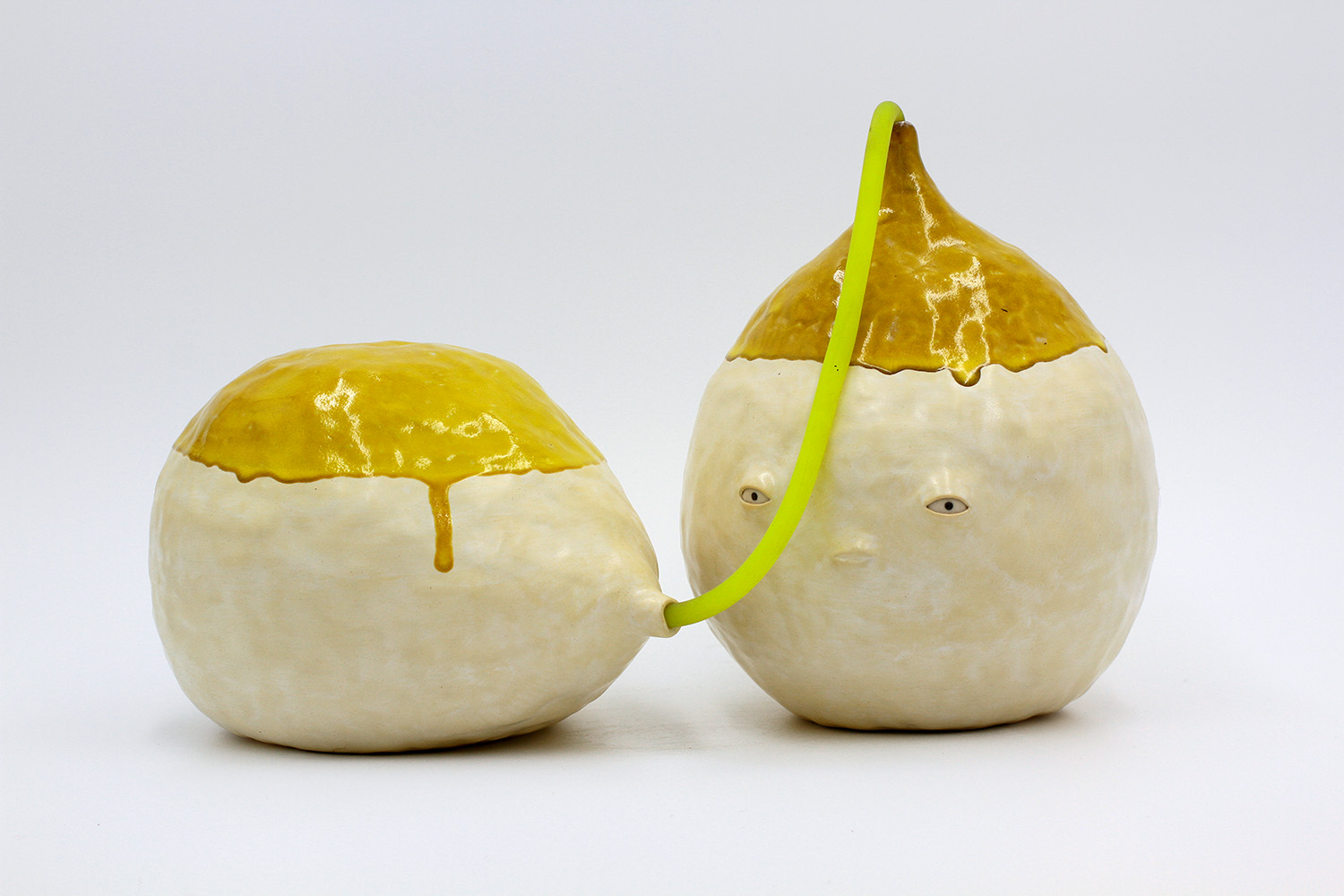 we are a pair of sculptures - just for good looks. we are connected by our yellow stretchy thing. |