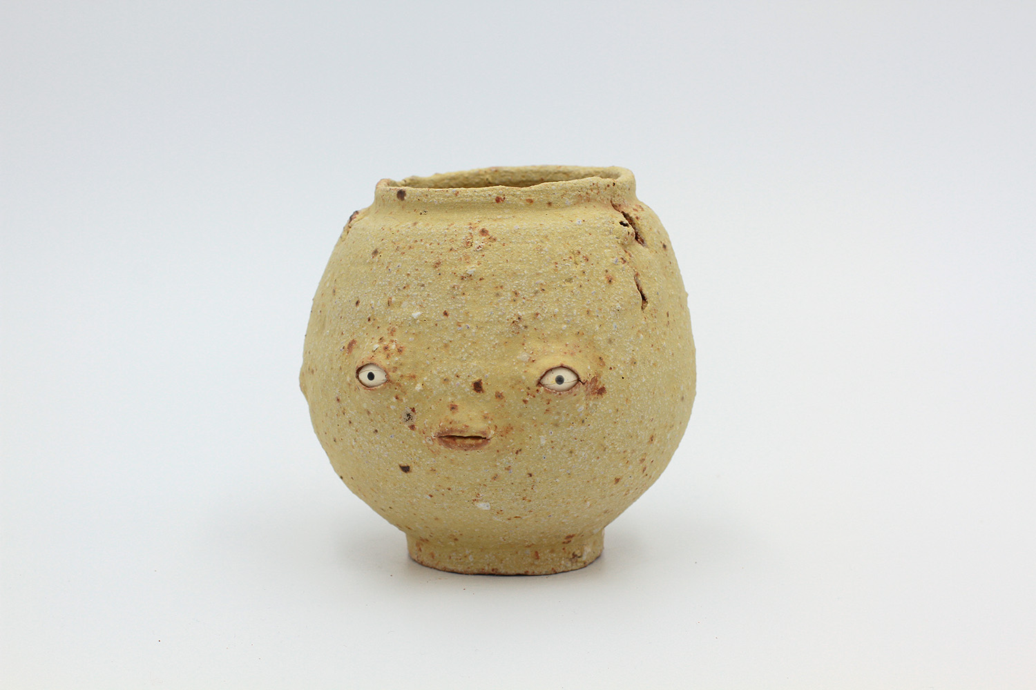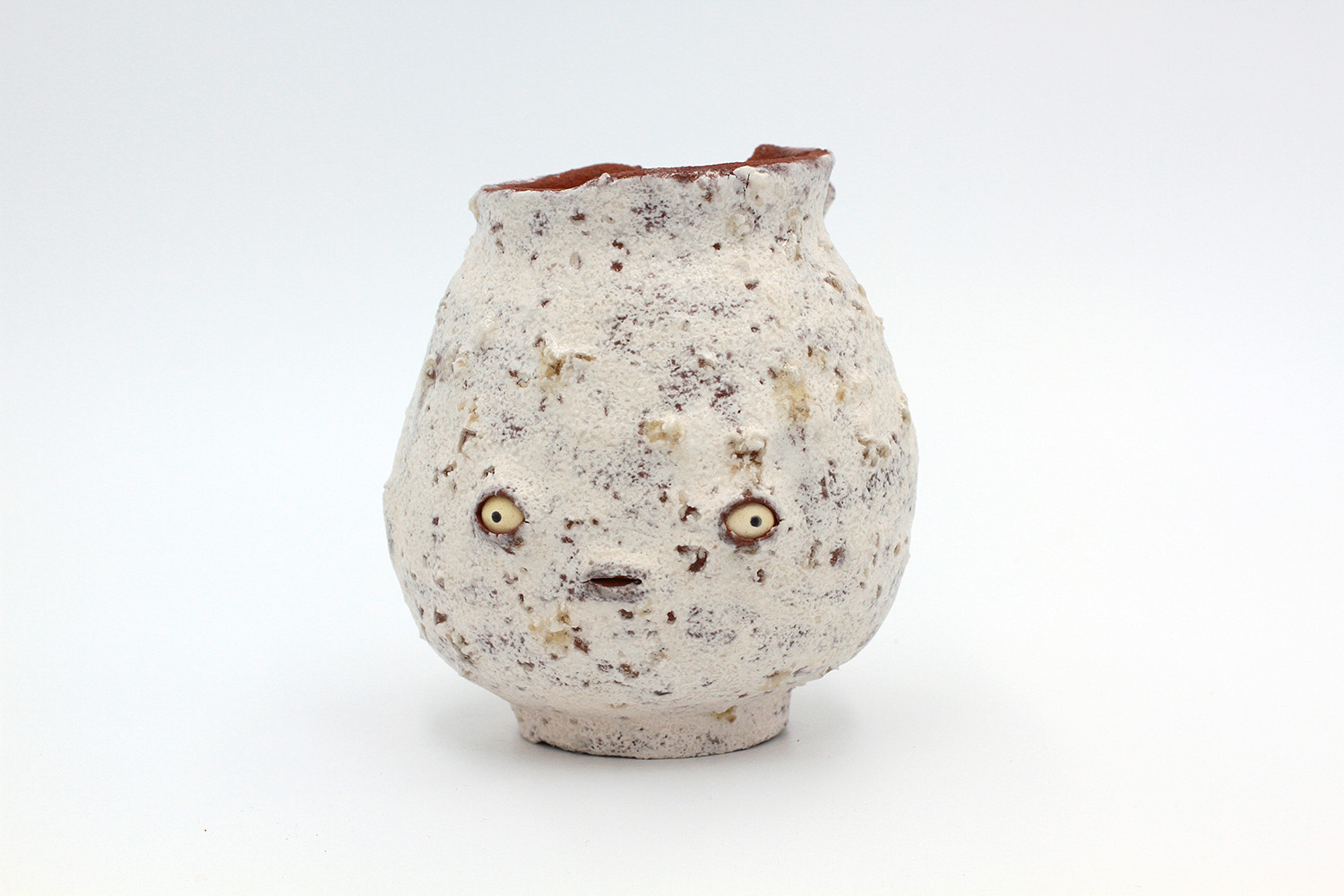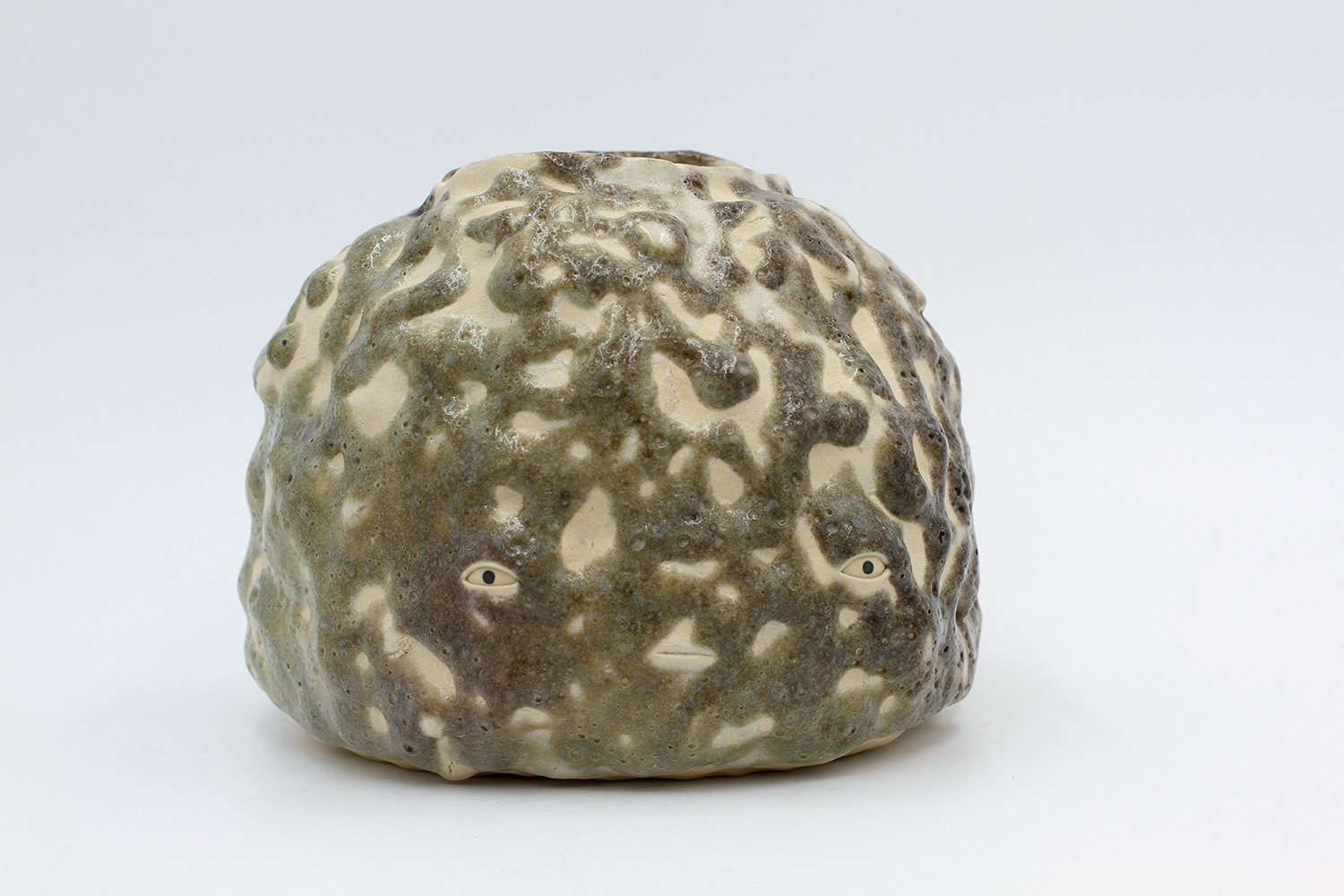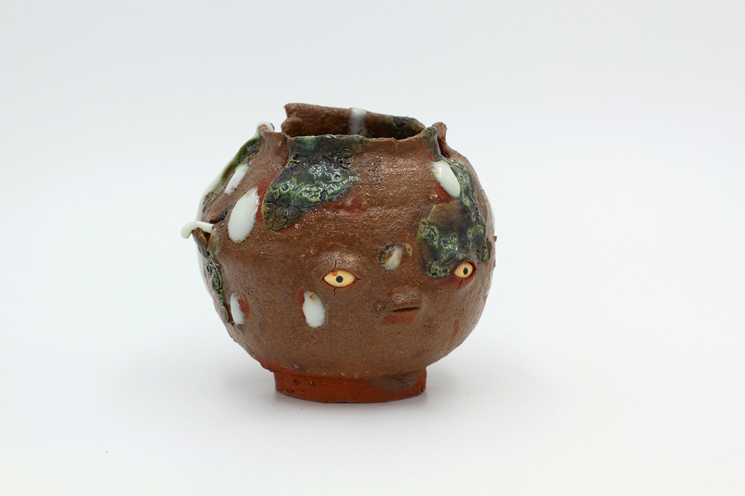 i'm a sculptural pot with bits of crackly lumpy glaze all over me. the cracks in me are intentional. |
