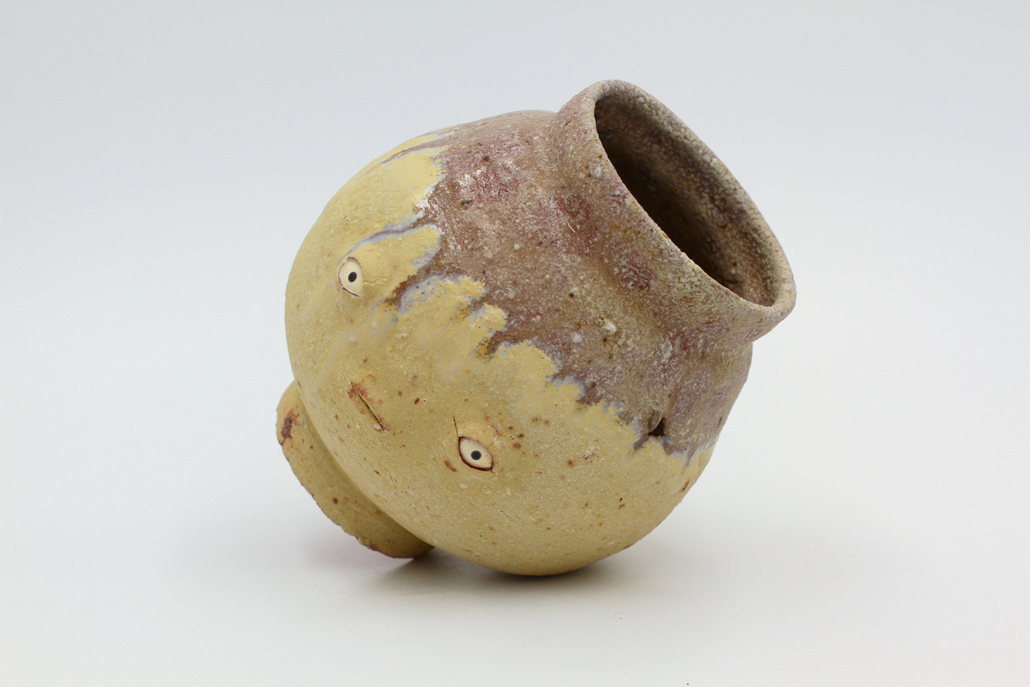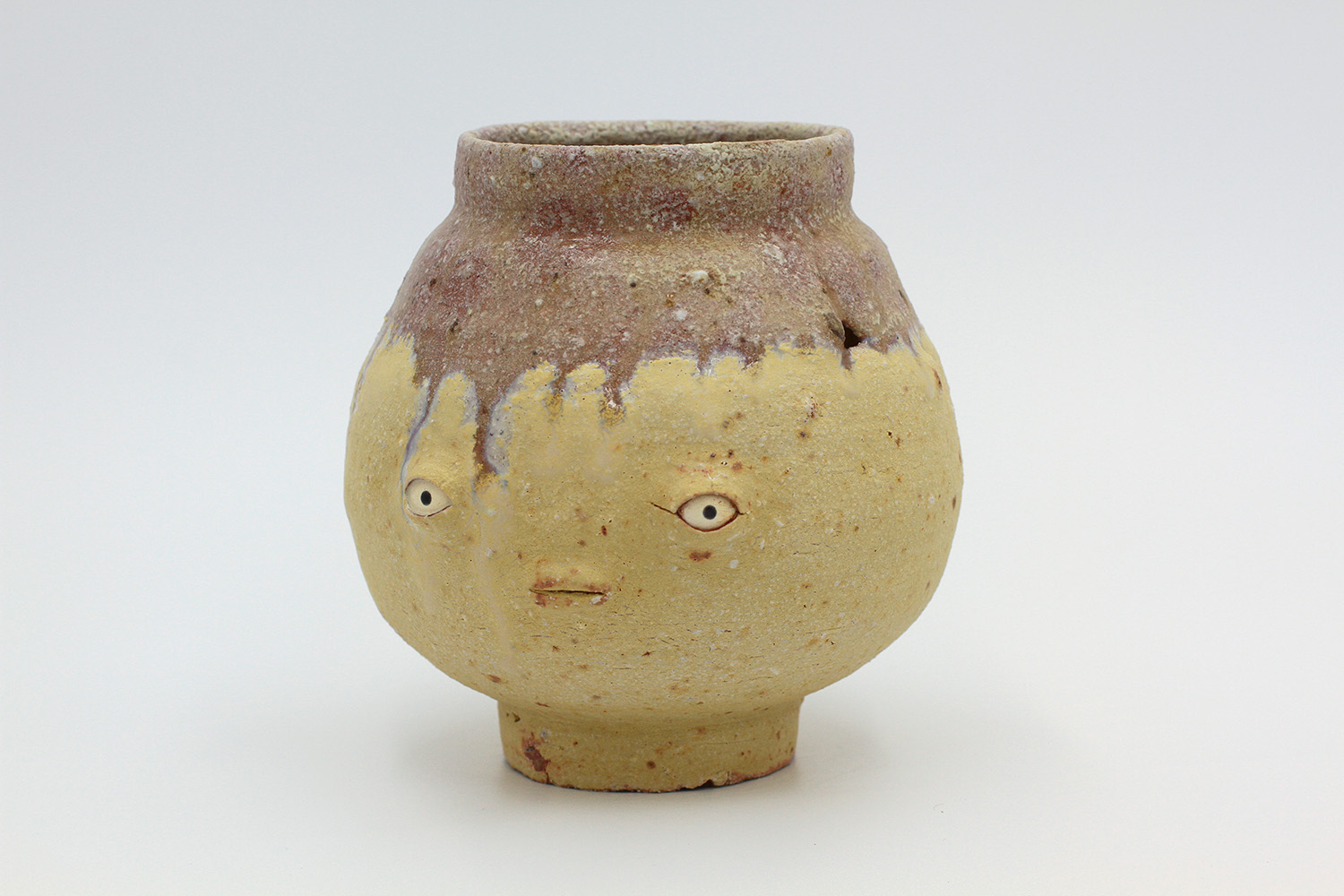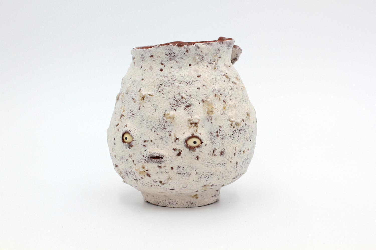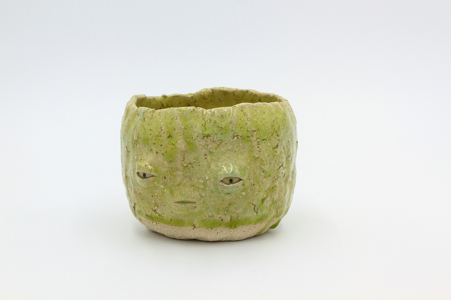i'm a sculptural pot with bits of crackly lumpy glaze all over me. the cracks in me are intentional. |