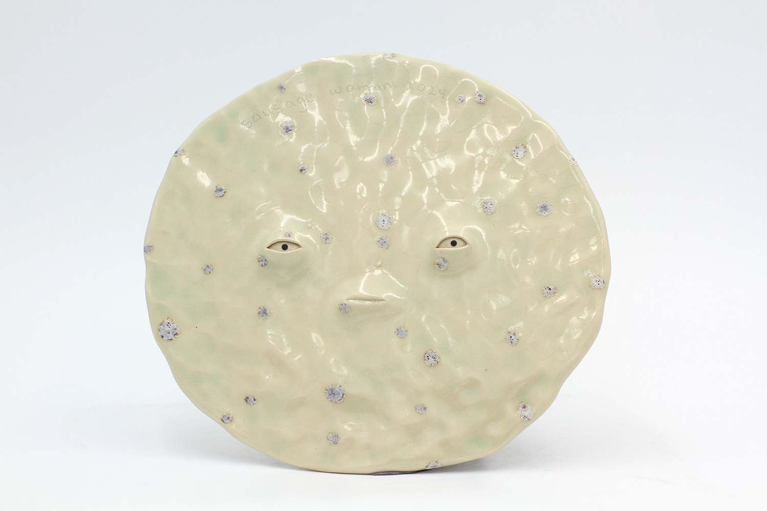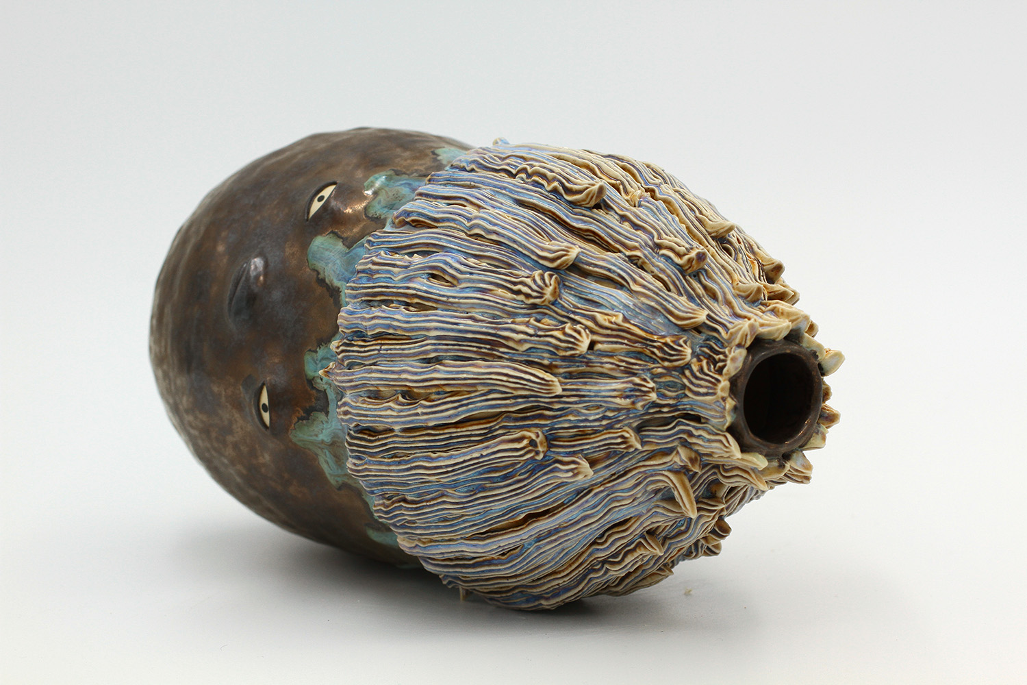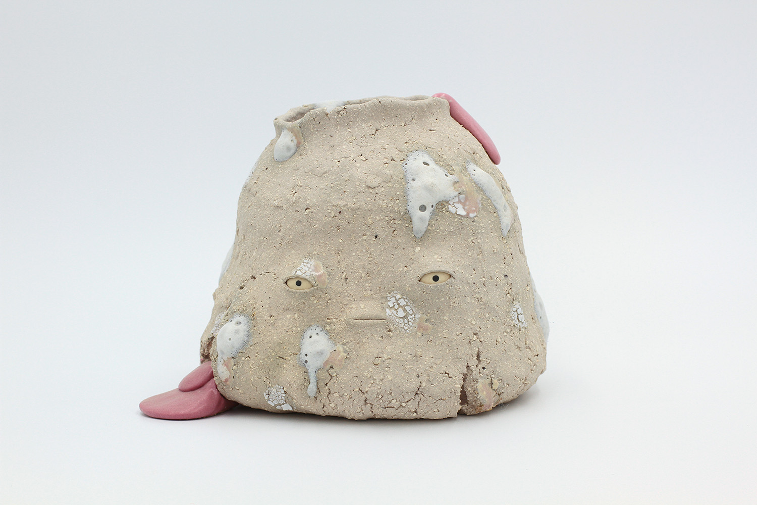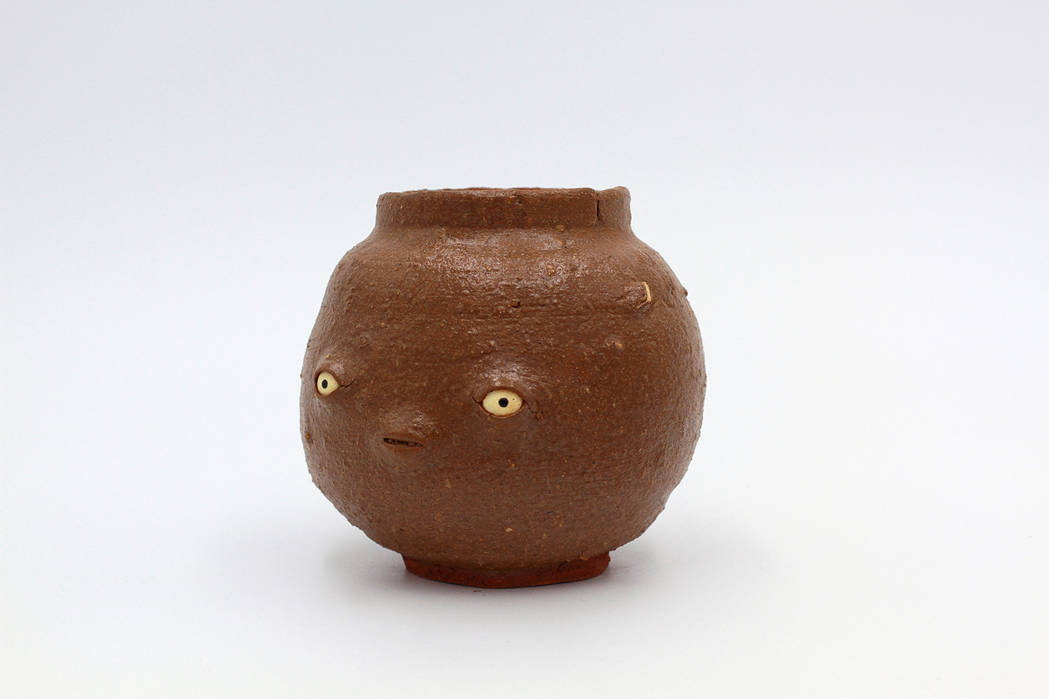 i'm a sculptural pot with bits of crackly lumpy glaze all over me. the cracks in me are intentional. |