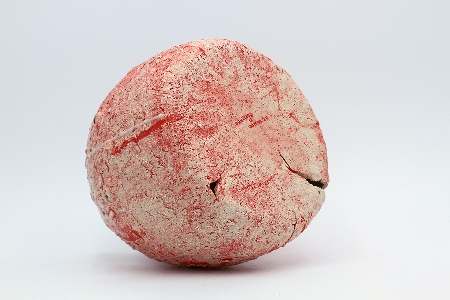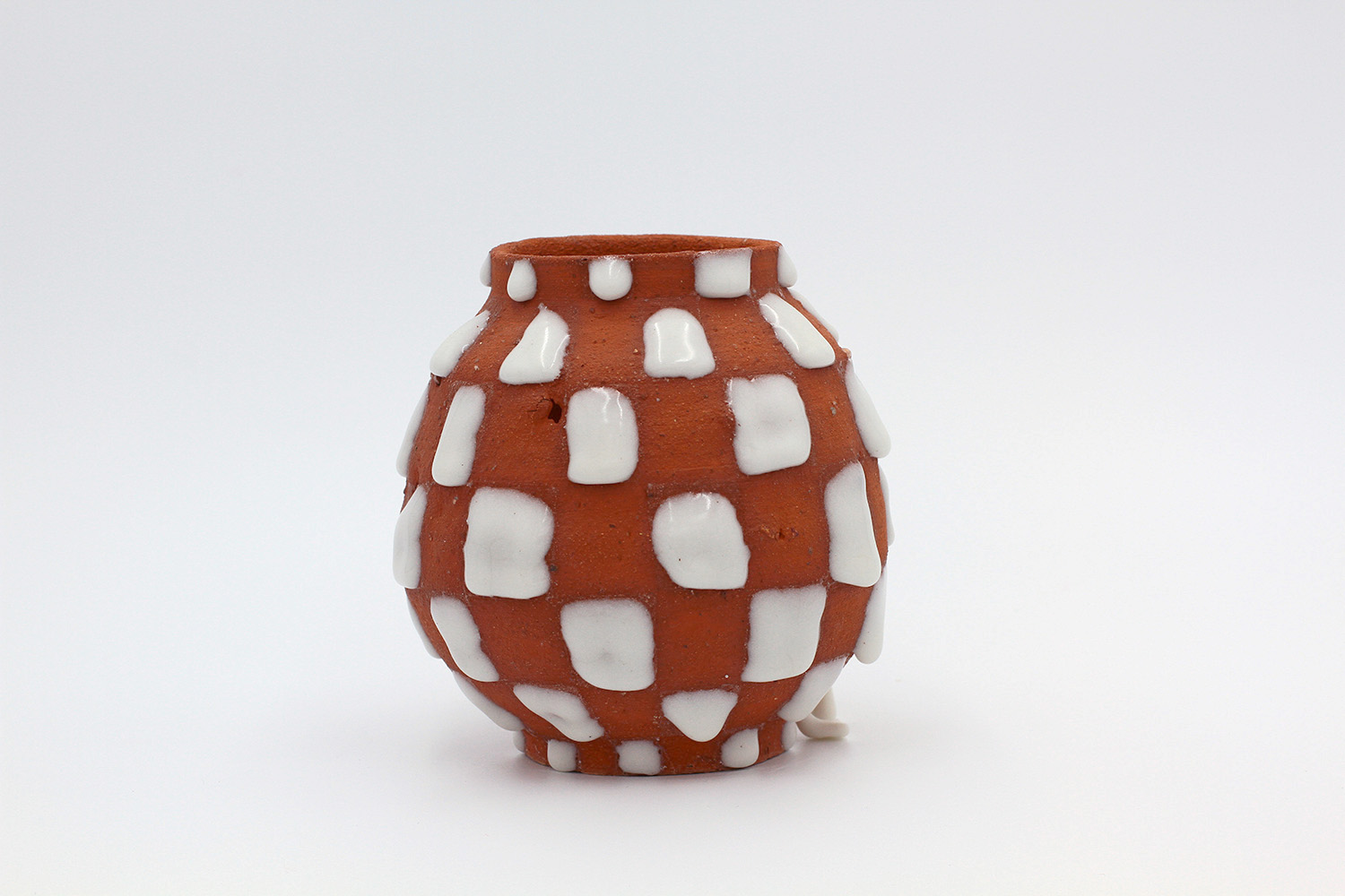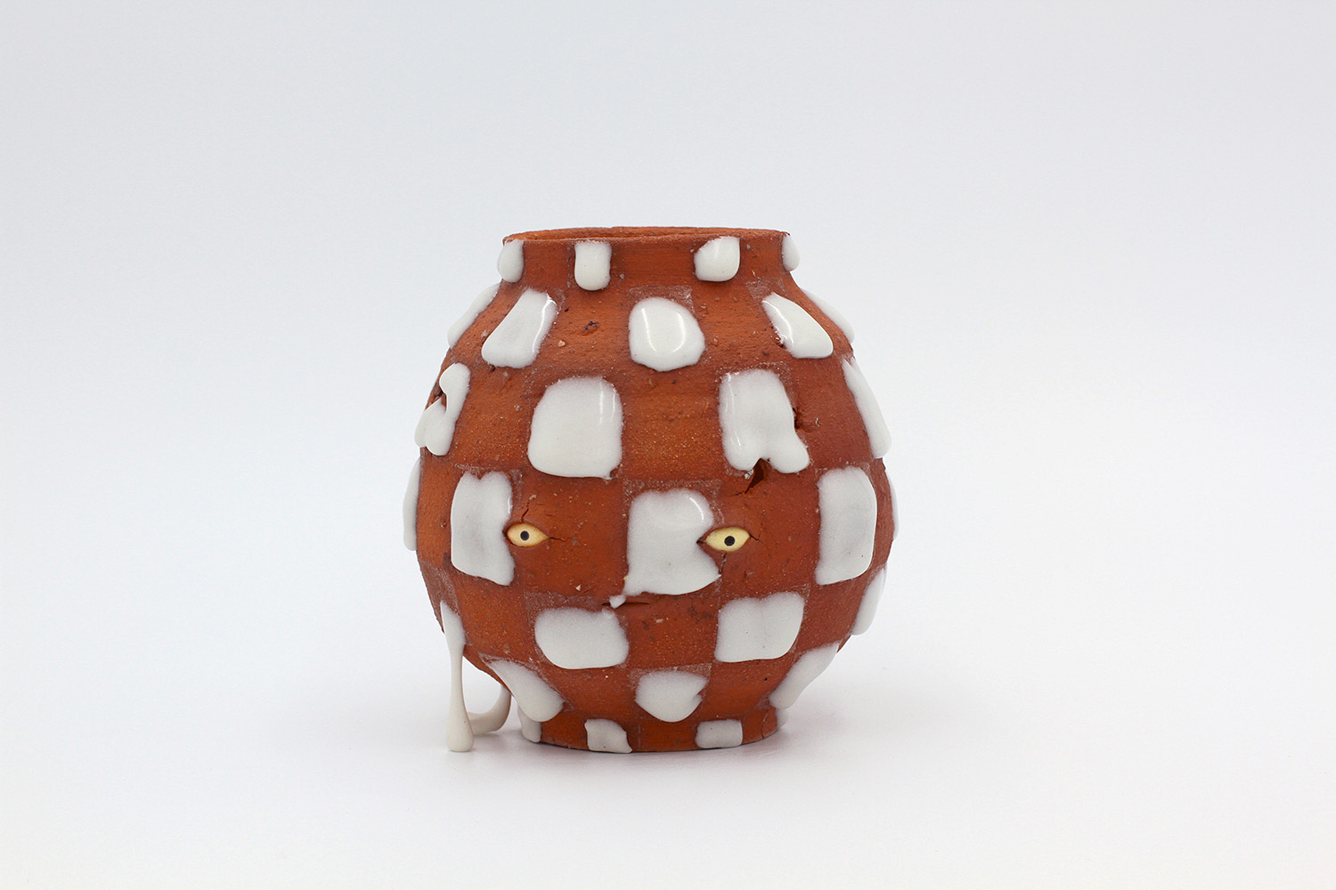 i am an ornamental vessel made from terracotta clay sourced from a building site in brunswick. my red gloopy glaze fell off in drips during firing. |