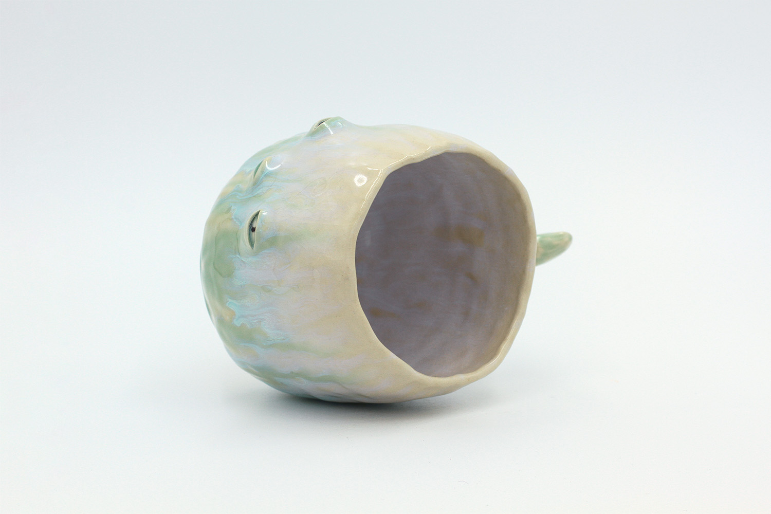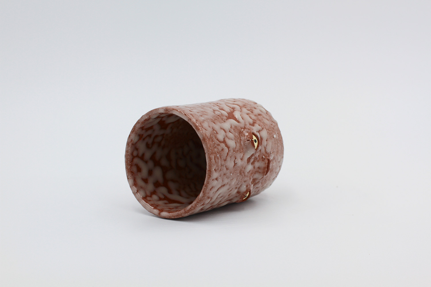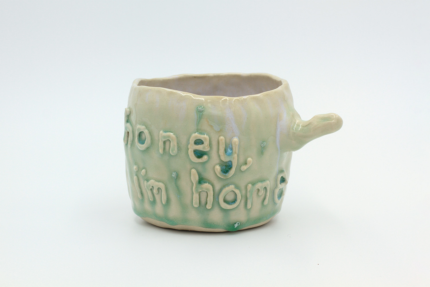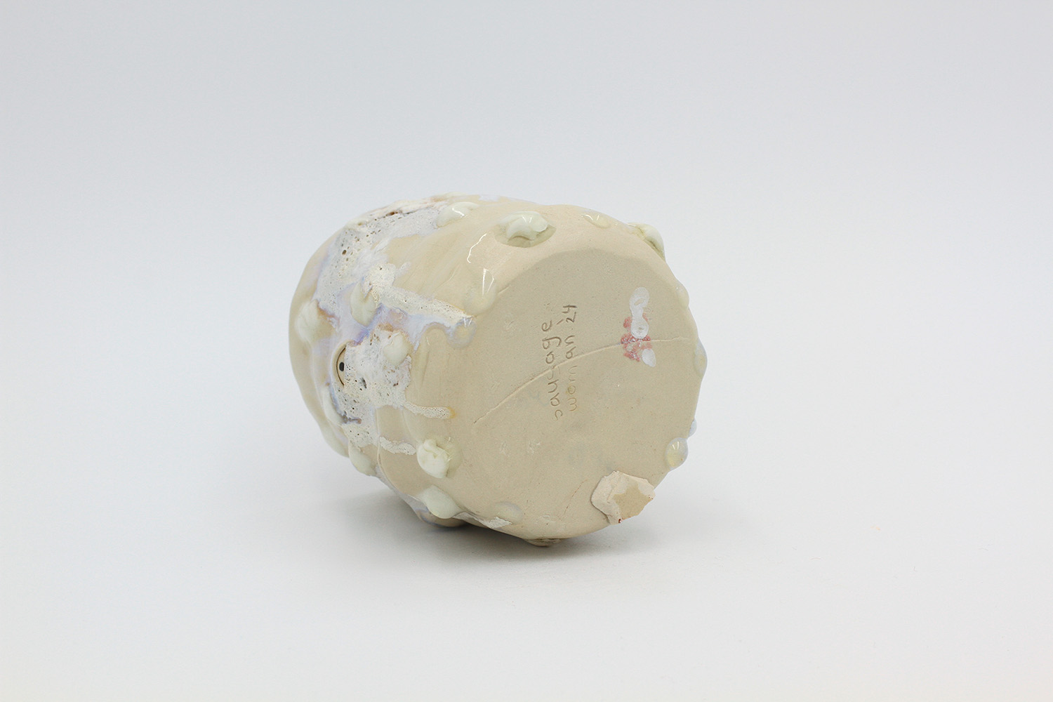 i am a cup that got a little bit over cooked in the kiln so the glaze stuck to the bottom of the kiln (pictured). no microwaves/dishwashers please. |