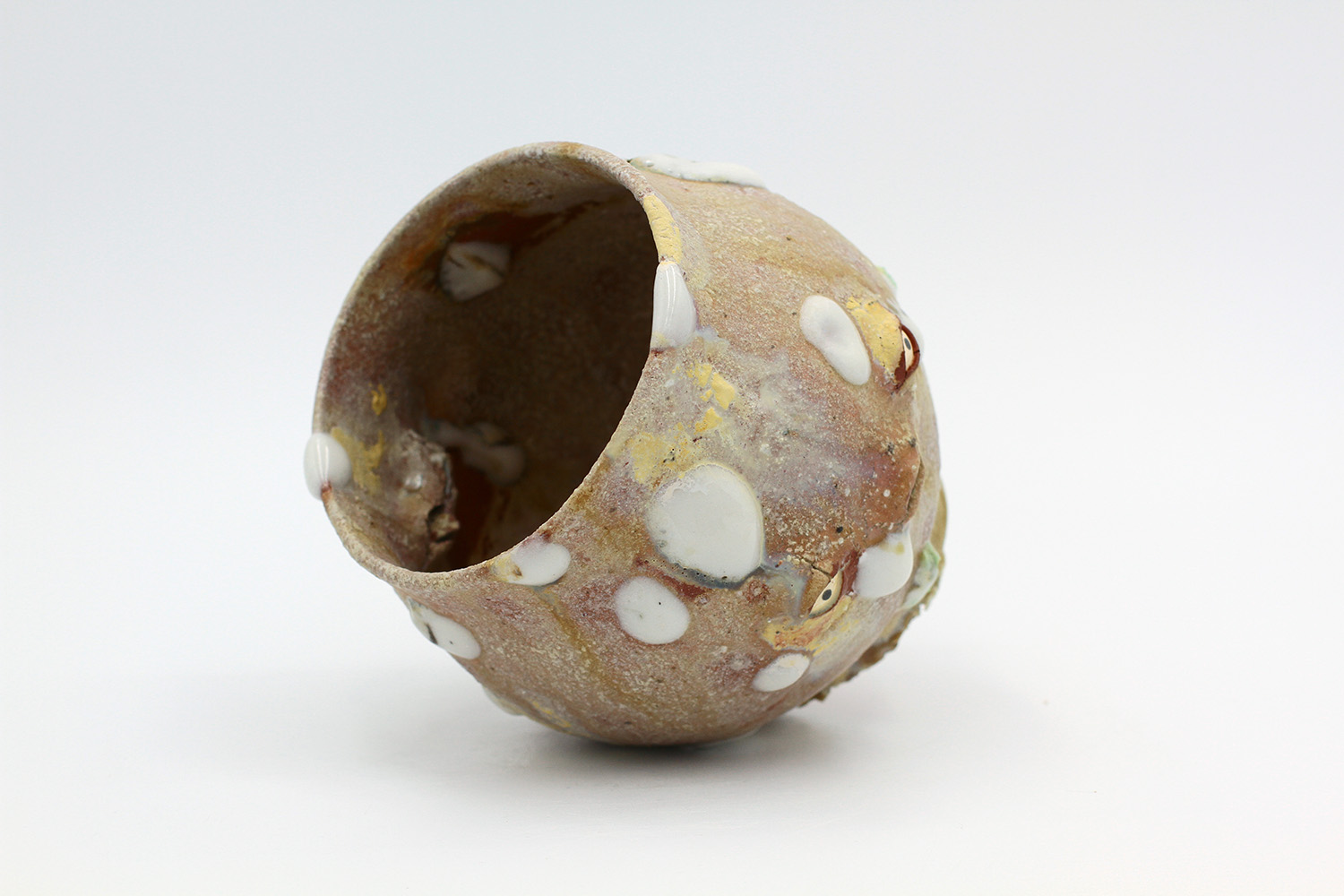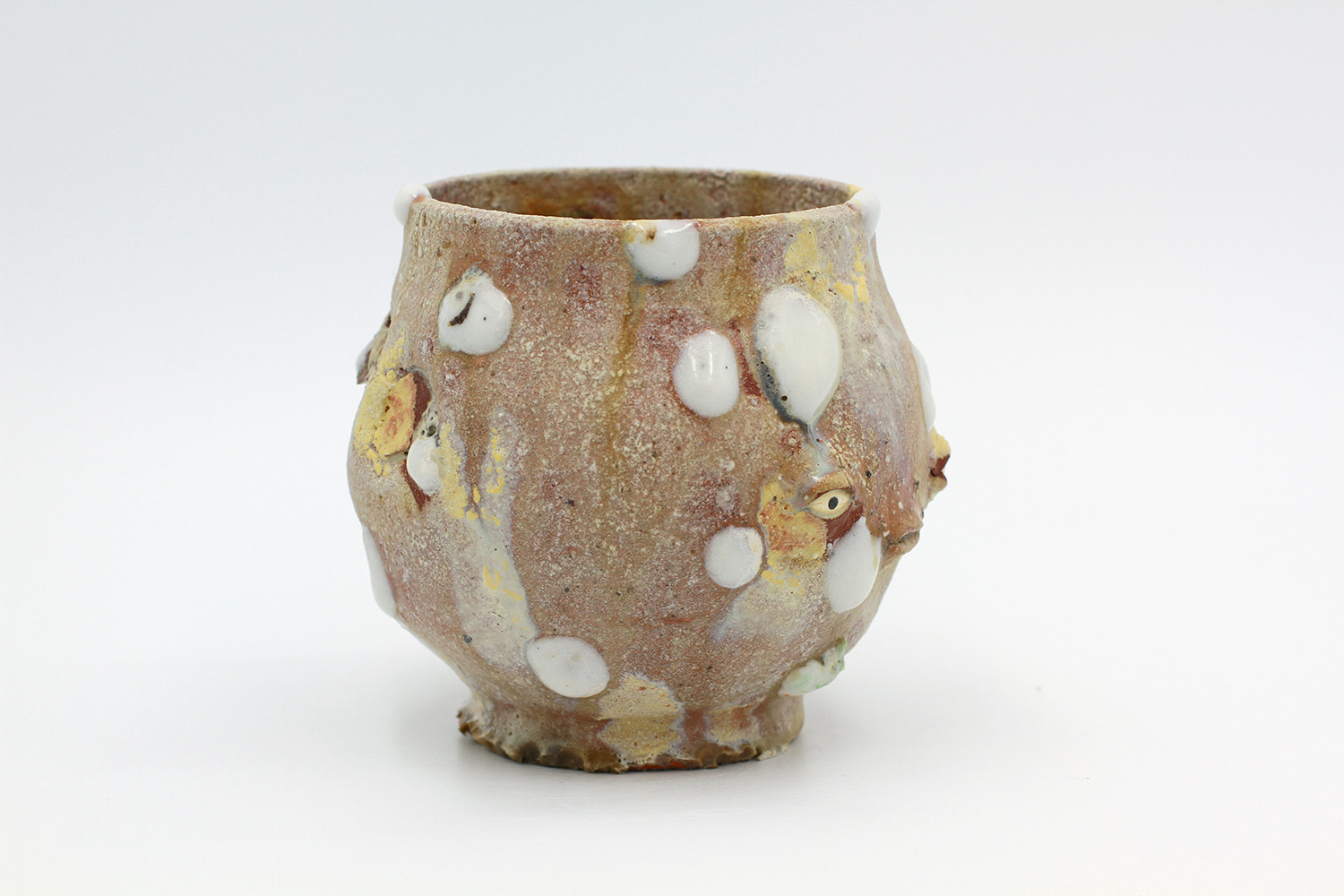 a vase with hard glaze blobs all over me - they're a little bit delicate. |