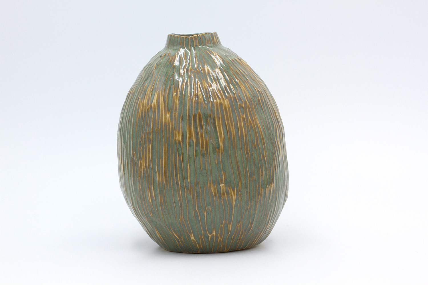 i am a vase with cut texture across my body. i'm watertight. |